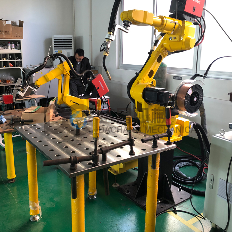 自動(dòng)焊接工作站廣泛應(yīng)用于汽車(chē)制造、工程機(jī)械、船舶修造、航空航天、軌道交通、結(jié)構(gòu)件焊接、鈑金箱體、自行車(chē)(摩托車(chē))制造、與焊接機(jī)器人或?qū)S煤笝C(jī)配套等。所以,實(shí)現(xiàn)機(jī)器人焊接、自動(dòng)化焊接專(zhuān)機(jī)與焊接工裝夾具的整體解決方案是現(xiàn)在焊接生產(chǎn)中共同追求的目標(biāo)。達(dá)昌機(jī)械制造有限公司在自身承接客戶(hù)變化多樣的結(jié)構(gòu)件的生產(chǎn)過(guò)程中,應(yīng)用組合夾具的設(shè)計(jì)思想,以其創(chuàng)意和創(chuàng)新的巧妙構(gòu)思、靈活多樣的結(jié)構(gòu)組合,研發(fā)了組合式三維焊接工裝夾具與機(jī)器人焊接的集成方案,并逐漸從滿足自我的使用到供應(yīng)給各行各業(yè)的用戶(hù)。柔性化的焊接工裝免除了設(shè)計(jì)人員重復(fù)設(shè)計(jì)和制作工裝的投入。為廣大用戶(hù)解決了焊接自動(dòng)化、工裝夾具自動(dòng)化及機(jī)器人焊接工裝夾具的整體解決方案。