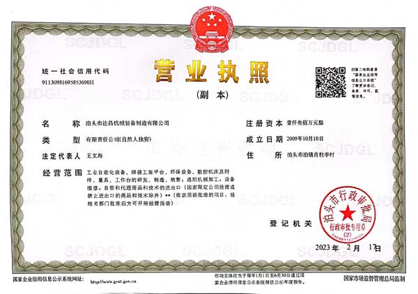 企業資質_泊頭市達昌機械制造有限公司