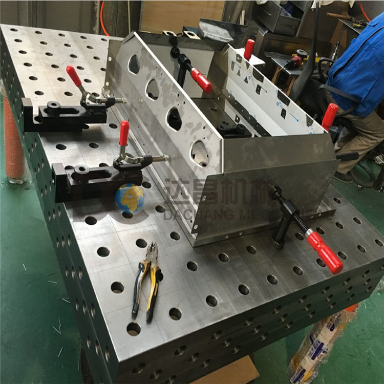 2、柔性化:拼裝方式多樣,用戶只要充分發揮想象力,幾乎可達到任何專用夾具同樣的定位和夾緊功能。拼裝快速,裝拆方便;工作臺面可以根據工件形狀、大小進行拼裝組合。臺面上的刻度和模塊尺寸的設計,使操作工人不用量具就可以根據工件尺寸迅速搭出所需要的工裝。
